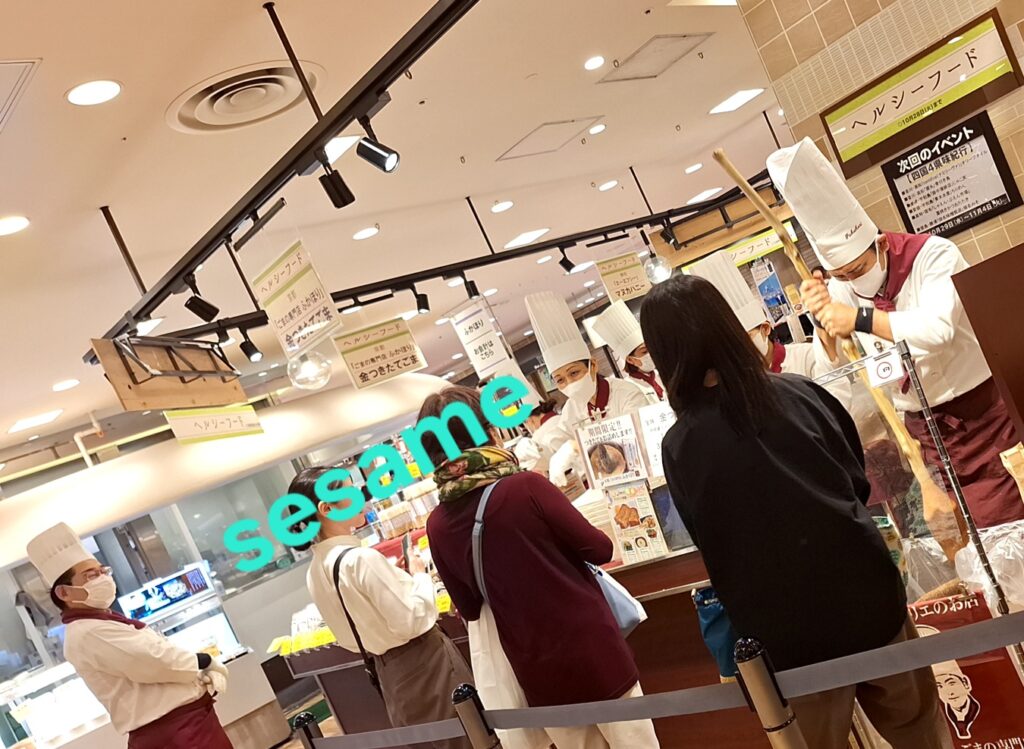 昨日、阪急百貨店の地下を歩いていると、ふわっと漂ってきたのはゴマの香ばしい香り。思わず香りに引き寄せられ、列に並んでみると、そこではつきたてのゴマが実演販売されていました。