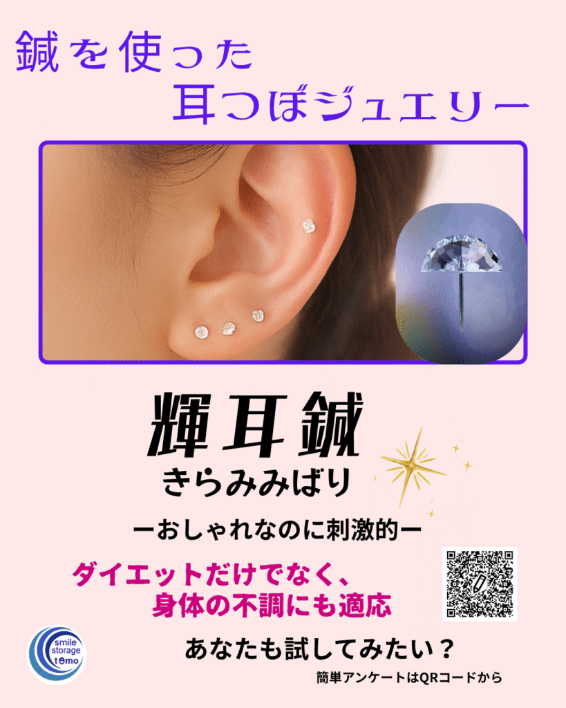 ※鍼を使った耳つぼジュエリー「輝耳鍼(きらみみばり)」のアンケートを実施しております。