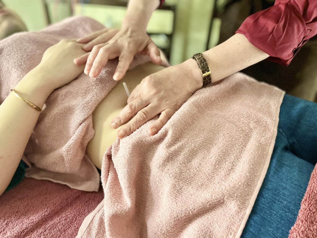 特にお腹まわりや下半身の冷えは、そのため、この日は鍼施術とみそ灸、ドライヘッドマッサージを組み合わせ、自身の自然治癒力を引き出し、やさしく整えることを意識して施術を行いました。